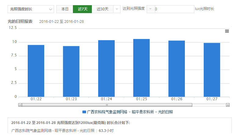 利用空氣溫度傳感器、空氣濕度傳感器、光照度、降雨量等傳感設備實時監(jiān)測茶葉種植的環(huán)境。實時監(jiān)測的環(huán)境情況數據每隔10秒鐘就上傳到“天潤智力智慧農業(yè)云平臺”,研究所人員只要登錄手機APP或者在電腦上,就可以遠程隨時隨地查看茶葉種植園區(qū)的各項關鍵數據。所采集的數據實時上傳到天潤智力智慧農業(yè)云平臺,并快速進行統(tǒng)計分析,解決了科研人員對數據的采集分析需求,并確保了數據采集的精準、快速、全面。