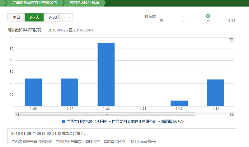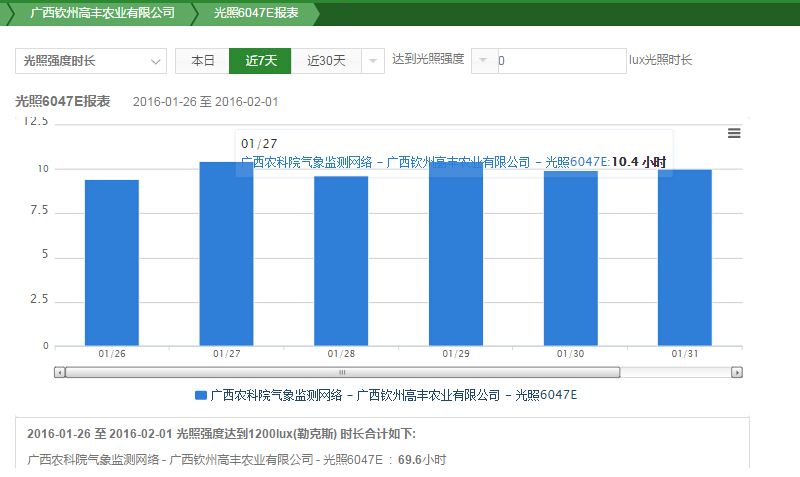 利用空氣溫度傳感器、空氣濕度傳感器、光照度、降雨量等傳感設備實時監(jiān)測火龍果種植的環(huán)境。實時監(jiān)測的環(huán)境情況數(shù)據(jù)每隔10秒鐘就上傳到“天潤智力智慧農(nóng)業(yè)云平臺”,研究所人員只要登錄手機APP或者在電腦上,就可以遠程隨時隨地查看火龍果種植基地的各項關鍵數(shù)據(jù)。所采集的數(shù)據(jù)實時上傳到天潤智力智慧農(nóng)業(yè)云平臺,并快速進行統(tǒng)計分析,解決了科研人員對數(shù)據(jù)的采集分析需求,并確保了數(shù)據(jù)采集的精準、快速、全面。