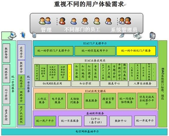該平臺提供了統(tǒng)一的信息發(fā)布平臺,對于用戶還提供了統(tǒng)一的個性化門戶服務(wù)以及針對系統(tǒng)管理的統(tǒng)一管理門戶支撐平臺。EIAC門戶支撐平臺是企業(yè)信息的統(tǒng)一入口,具有很強的易用性和可擴展能力。