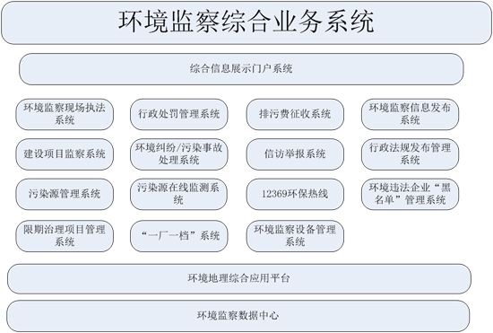 隨著環(huán)境保護(hù)信息化建設(shè)的不斷深入,環(huán)境保護(hù)業(yè)務(wù)主管部門紛紛建設(shè)了各種業(yè)務(wù)管理系統(tǒng),如污染源管理系統(tǒng)、建設(shè)項(xiàng)目管理系統(tǒng)、排污收費(fèi)系統(tǒng)等,環(huán)境監(jiān)察人員執(zhí)行環(huán)境監(jiān)察、行政執(zhí)法的日常工作中,將不得不同時(shí)面對(duì)多個(gè)業(yè)務(wù)系統(tǒng),而且各業(yè)務(wù)系統(tǒng)之間不能信息共享和業(yè)務(wù)流程的互動(dòng),部分阻礙了環(huán)境監(jiān)察管理的工作發(fā)展。