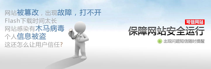 “可信網(wǎng)站”驗證服務(站點衛(wèi)士)是由中國互聯(lián)網(wǎng)絡信息中心攜手北龍中網(wǎng)聯(lián)合頒發(fā)的驗證網(wǎng)站真實身份的第三 方權威服務。它通過對域名注冊信息、網(wǎng)站信息和企業(yè)工商或事業(yè)單位組織機構信息進行嚴格交互審核來認證網(wǎng)站真實信息,并利用先進的木馬掃描技術幫助網(wǎng)站了解自身安全情況,是中國數(shù)百萬網(wǎng)站的