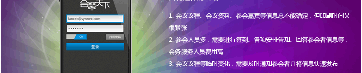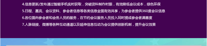 新聚思手機(jī)應(yīng)用會(huì)議系統(tǒng),為會(huì)務(wù)、公關(guān)公司項(xiàng)目經(jīng)理或者公司會(huì)務(wù)組織者提供手機(jī)移動(dòng)應(yīng)用會(huì)議系統(tǒng),主要包括日程、嘉賓資料及時(shí)的會(huì)議更新