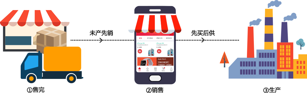 未產(chǎn)先銷 ,降低經(jīng)營風(fēng)險,為商家提供先買后供的生產(chǎn)模式,掌握市場需求生產(chǎn),避免資源浪費(fèi)。