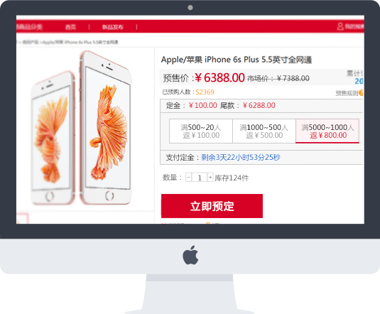 1、商城列表頁展示當(dāng)前正在進(jìn)行預(yù)訂的產(chǎn)品,點(diǎn)擊立即預(yù)訂跳轉(zhuǎn)到詳情頁。