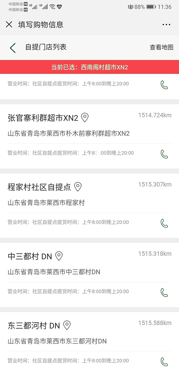 所有門店自提、所有社區(qū)自提點(diǎn)(團(tuán)長(zhǎng))的具體信息