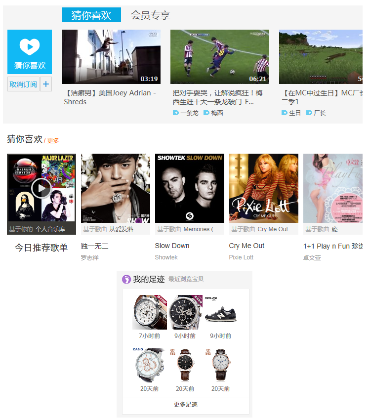 我們認識一個新的朋友,接觸后大家都會對對方產(chǎn)生一個印象,淺到知道他叫什么,方便下次打招呼;接觸的多了會慢慢對對方有更深入的了解,比如興趣喜好、背景等。瀏覽一個網(wǎng)站也是一樣,現(xiàn)在幾乎所有網(wǎng)站都在想盡辦法獲取用戶資料,以便做分析和針對推送,但有沒有想過我們給用戶反饋了什么他所要得到的東西。一味的索取沒有回饋,那這段感情肯定長久不了。為什么要起這個標題,也是這個意思,“猜你喜歡”感覺只是多出一個內(nèi)容推送模塊,但背后潛藏著非常多的用戶分析研究,而反饋給用戶的感覺是他在這個網(wǎng)站瀏覽過后的存在感,無時無刻的和用戶保持互動,才是用戶體驗最高境界。