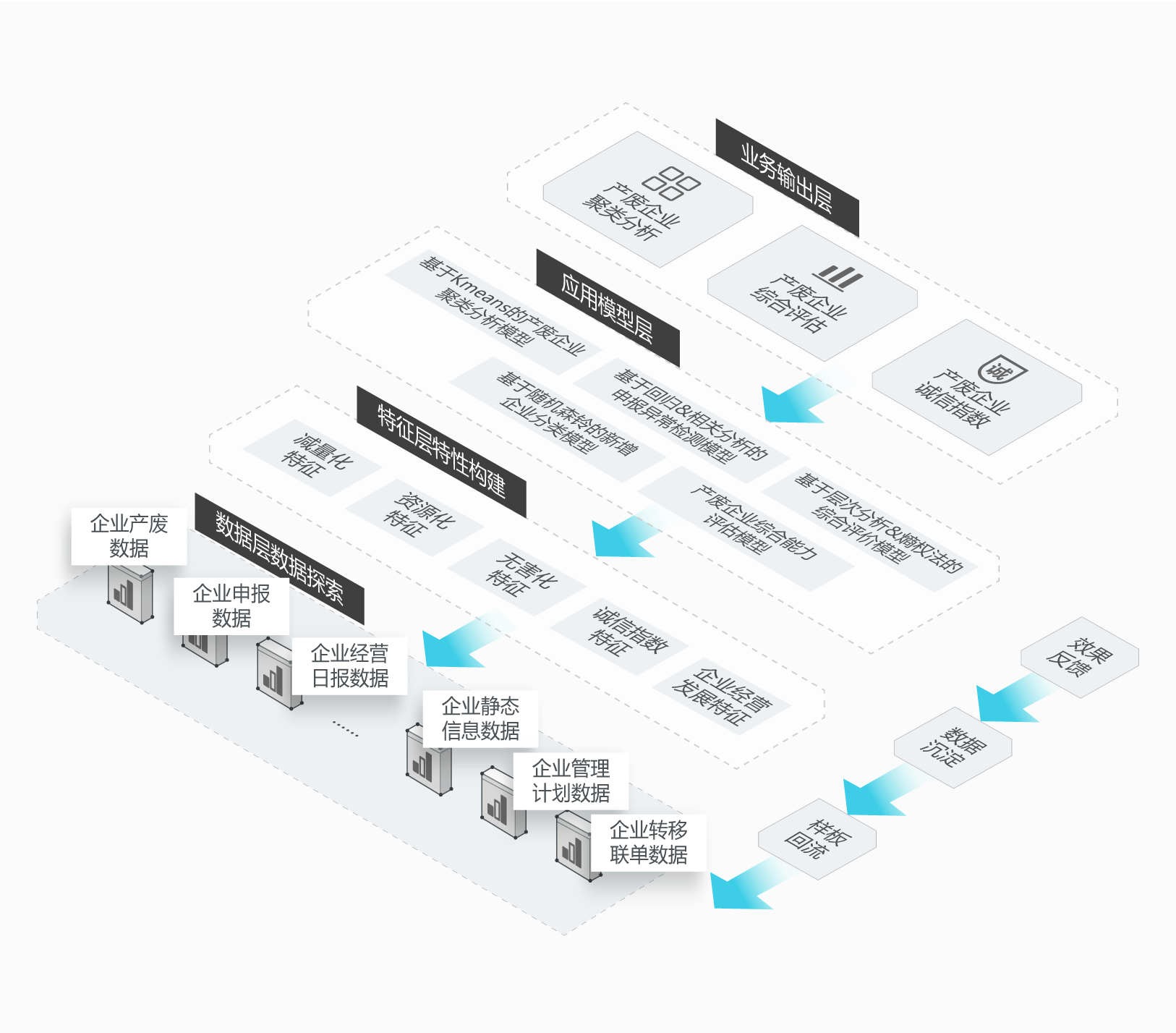 應(yīng)用案例:某固廢大數(shù)據(jù)項(xiàng)目中,采用大數(shù)據(jù),數(shù)據(jù)挖掘和機(jī)器學(xué)習(xí)算法實(shí)現(xiàn)固廢管理的創(chuàng)新。我們在固廢大數(shù)據(jù)項(xiàng)目中所做的工作,涵蓋了固體廢物生命周期的多個環(huán)節(jié)。在固廢產(chǎn)生環(huán)節(jié),針對產(chǎn)廢企業(yè)的環(huán)境畫像,環(huán)境綜合能力評估模型和申報(bào)反欺詐模型。在處置環(huán)節(jié),針對處置企業(yè)的環(huán)境畫像,環(huán)境綜合能力評估和申報(bào)反欺詐模型。在轉(zhuǎn)移環(huán)節(jié)中,針對產(chǎn)廢和處廢企業(yè),構(gòu)建智能推薦模型,實(shí)現(xiàn)產(chǎn)廢和處廢的科學(xué)匹配,減少中間環(huán)節(jié),提高交易效率。在固廢運(yùn)輸環(huán)節(jié),我們構(gòu)建了危險廢物運(yùn)輸環(huán)節(jié)的動態(tài)監(jiān)管和風(fēng)險研判系統(tǒng)。