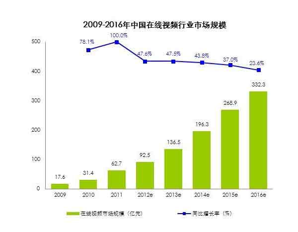 在國(guó)內(nèi),據(jù)iUserTracker監(jiān)測(cè)數(shù)據(jù)顯示,在線視頻在2012年第二季度已經(jīng)超越搜索服務(wù)和社區(qū)交友,成為中國(guó)用戶規(guī)模最大的網(wǎng)絡(luò)服務(wù),2012年5月用戶規(guī)模達(dá)到4.2億。艾瑞的分析報(bào)告指出,2012年視頻行業(yè)整體市場(chǎng)規(guī)模達(dá)到92.5億元,同比2011年增長(zhǎng)了47.6%,而且未來還會(huì)以30%以上的速度繼續(xù)增長(zhǎng)。