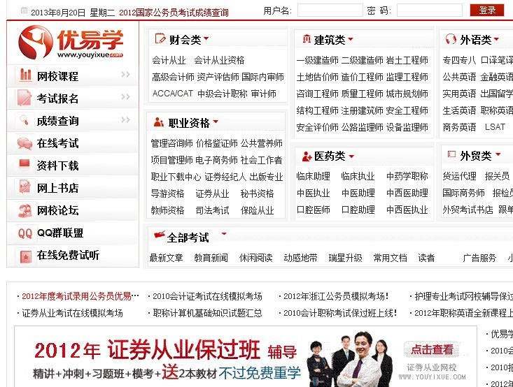 優(yōu)易學(www.youyixue.com)網(wǎng)站創(chuàng)辦于2007年6月,在教育部基礎教育司相應中央提出的加強大學生思想文化道德建設的號召下成立,本著教育為己任,不斷開拓大學生的自身修養(yǎng)和文化水平,是目前國內最大的教育考試類網(wǎng)站之一,同時我們是中東部地區(qū)訪問量最大的教育類網(wǎng)站,為谷歌全球新聞中心一萬家合作伙伴之一,24小時不間斷為大家發(fā)布教育考試資訊…
