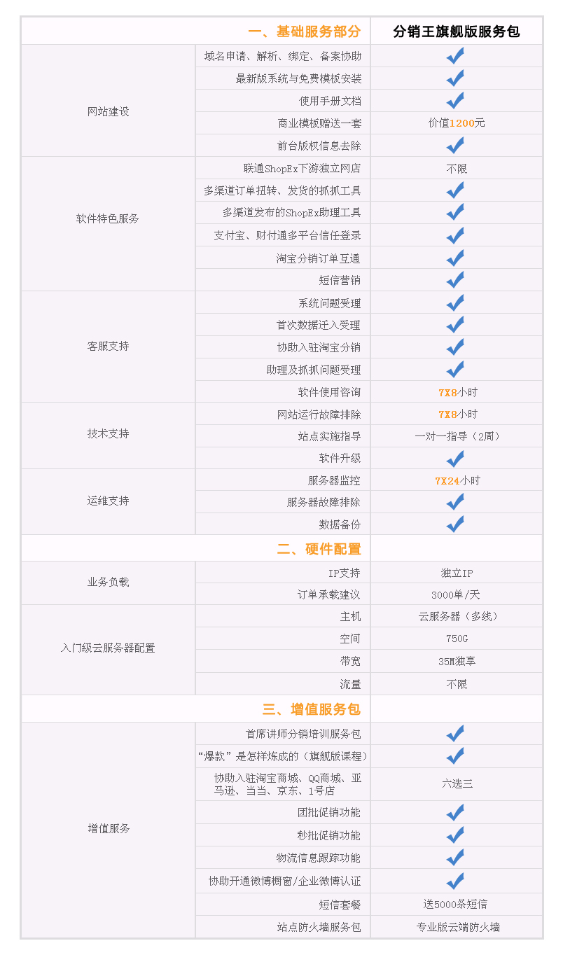 分銷王旗艦版套餐適合擁有自主品牌或者擁有超大規(guī)模在線或線下業(yè)務(wù)的大型公司,提供高端云服務(wù)器和最新版分銷王網(wǎng)上商店系統(tǒng),能滿足您對軟硬件的個(gè)性化、高負(fù)載需求。